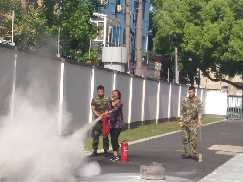接着,消防中队的警官进行了消防知识的讲解,详细介绍了火灾发生时如何逃生、灭火器的种类、结构及使用方法。在介绍完火灾逃生知识后,进行了灭火器使用的实战演练,随后由教师代表进行灭火器使用演练。