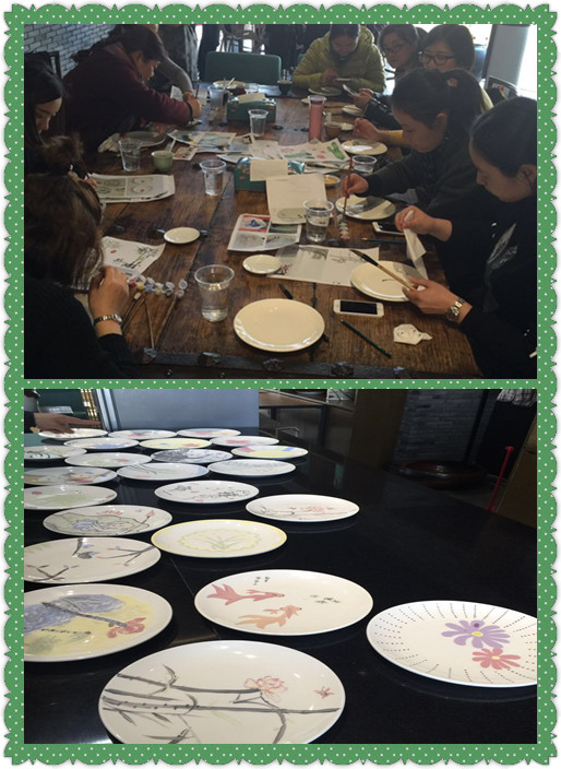 3月2日下午,全体教师分为两组来到了朱家角美术创意社,在专业老师地指导下,全体教师心领神会,一个个拿起手中的画笔,在瓷盘上开始作画,半个小时过去了,个别老师的作品已初有成效,接着一个个精美绝伦、富有艺术的作品涌现,有种身临其境地感觉,不禁赞叹艺术的无限魅力。