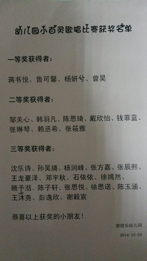 幼儿园小百灵歌唱比赛获奖名单
