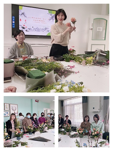 为了迎接2023年“三八”国际劳动妇女节,3月6日下午,幼儿园工会在多功能厅,组织老师们开展了主题为“寄情花艺 慢品生活”的美育素养培训活动,让大家能够在繁忙的工作中放松自我、陶冶心境,给业余文化生活带来别样的色彩与芬芳。