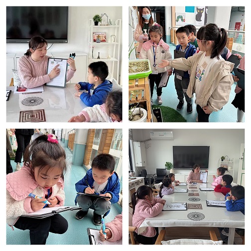 活动伊始,教学负责人潘老师带着小评委共同商讨看什么、怎么评、如何记等内容,也对教师们给予了观察和记录的要求。活动中评委们穿梭在各个自然角之间,欣赏着每一处角落的与众不同,聆听小朋友们真实的交流,感受他们对自然角的喜爱。教师们则在一旁认真倾听和记录,站位儿童视角去观察他们间的互动与交流。