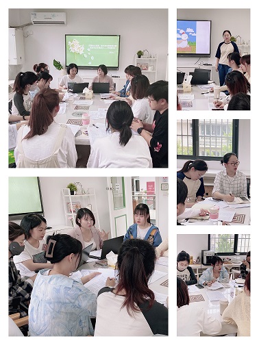 活动伊始,主持人丁老师带领青年教师们回顾了上一期活动的主要内容,并邀请三位青年教师就绘本故事讲述的技巧,演绎方式等进行完善,以《鸡蛋哥哥》故事为例,绘声绘色地讲述了鸡蛋哥哥变成鸡哥哥的有趣历程。其次,丁老师向大家分享了常见的绘本表演形式,以童话剧的表演形式为例展开了细致的讲解,从其特殊性到实施原则及注意事项,为青年教师打开了童话剧演绎之门。最后,青年教师们分组开展童话剧演绎的创作。