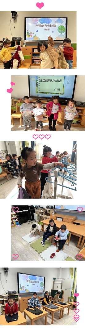 为了培养幼儿良好的生活自理能力,提高幼儿自我服务意识和自信心。根据小班孩子年龄特点和发展目标,12月8日,甜甜乐幼儿园开展了“自理小能手·快乐显身手”技能大比拼活动。本次自理能力大赛根据小班幼儿年龄特点和发展水平,设定五项比拼自理内容:穿脱鞋子、穿脱衣服、折裤子、折衣服和挂衣服。活动中,我们邀请家长一同参与,观摩孩子们比赛过程。