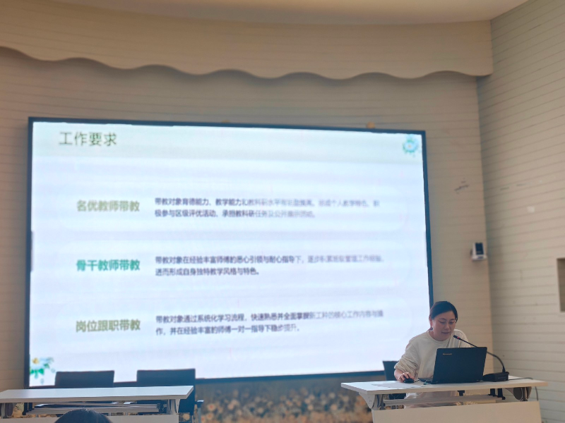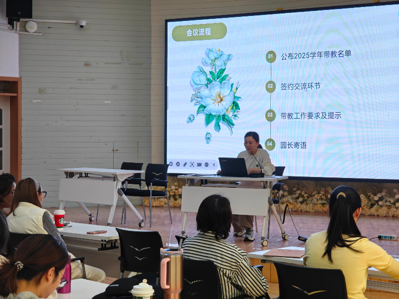 活动伊始,师训负责人刘老师公布了两园《2025学年带教结对名单》。一份名单,一份责任。这不仅是一次简单的配对,更象征着教育智慧与教育薪火的传递与承接,标志着新学年带教工作的正式启航。