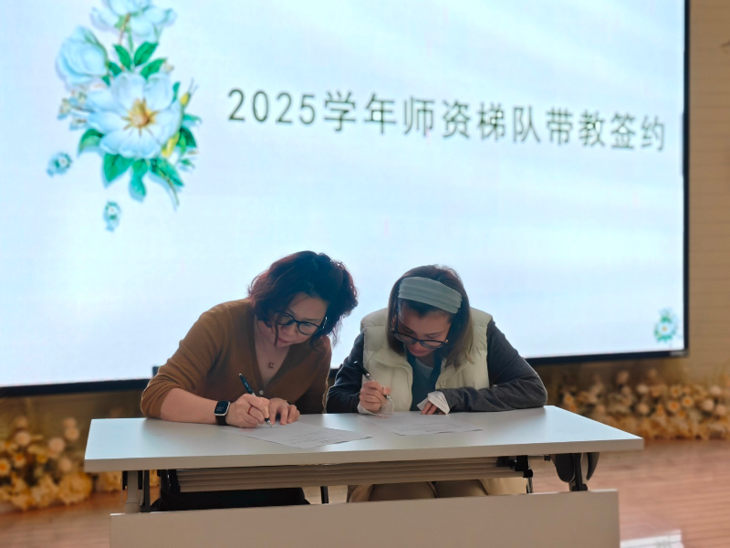 在庄重而温馨的氛围中,活动进入了核心环节——“师徒签约”。师傅与徒弟郑重地在带教协议上签下自己的名字。一笔一划,是承诺,亦是期许。陆佳圣与张婉依两位老师作为师傅与徒弟的代表,各自分享了带教计划与学习中的困惑及今后期望的发展。